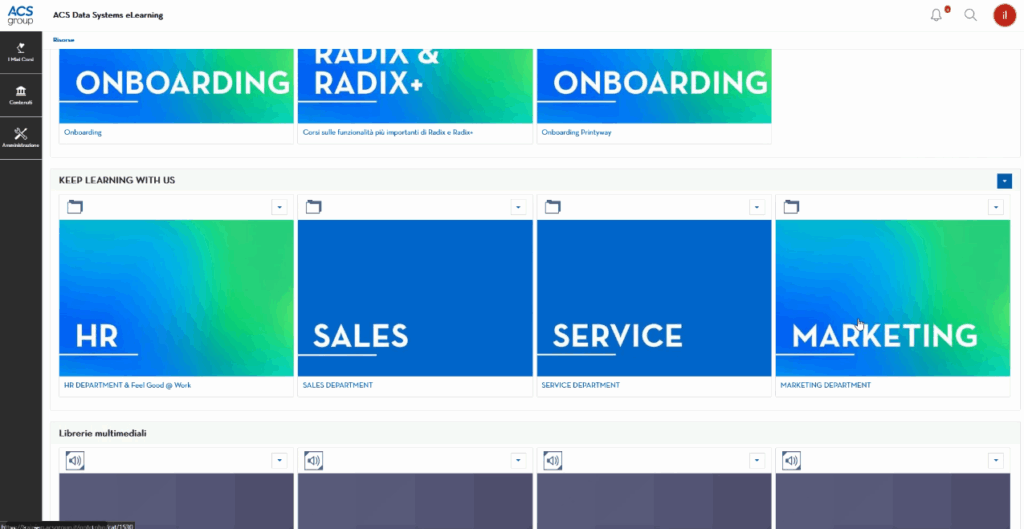 Con ACS Group abbiamo costruito un progetto che va oltre l’assistenza tecnica. Abbiamo trasformato una piattaforma sottoutilizzata in uno strumento aziendale integrato, capace di accompagnare dipendenti e reparti lungo percorsi formativi specifici, visivamente curati e funzionali.